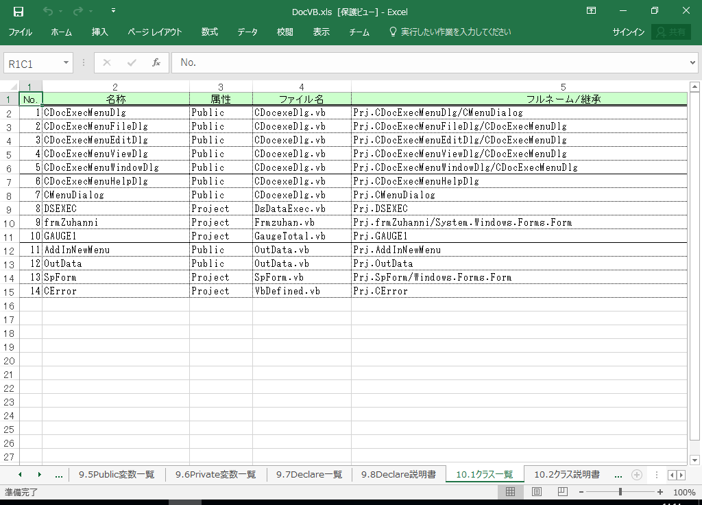 VB2008 仕様書 作成 ツール【A HotDocument】(VB2008対応 仕様書) - クラス一覧