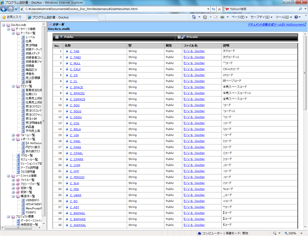 ドキュメント自動生成ツール【A HotDocument】 - html形式−定数一覧